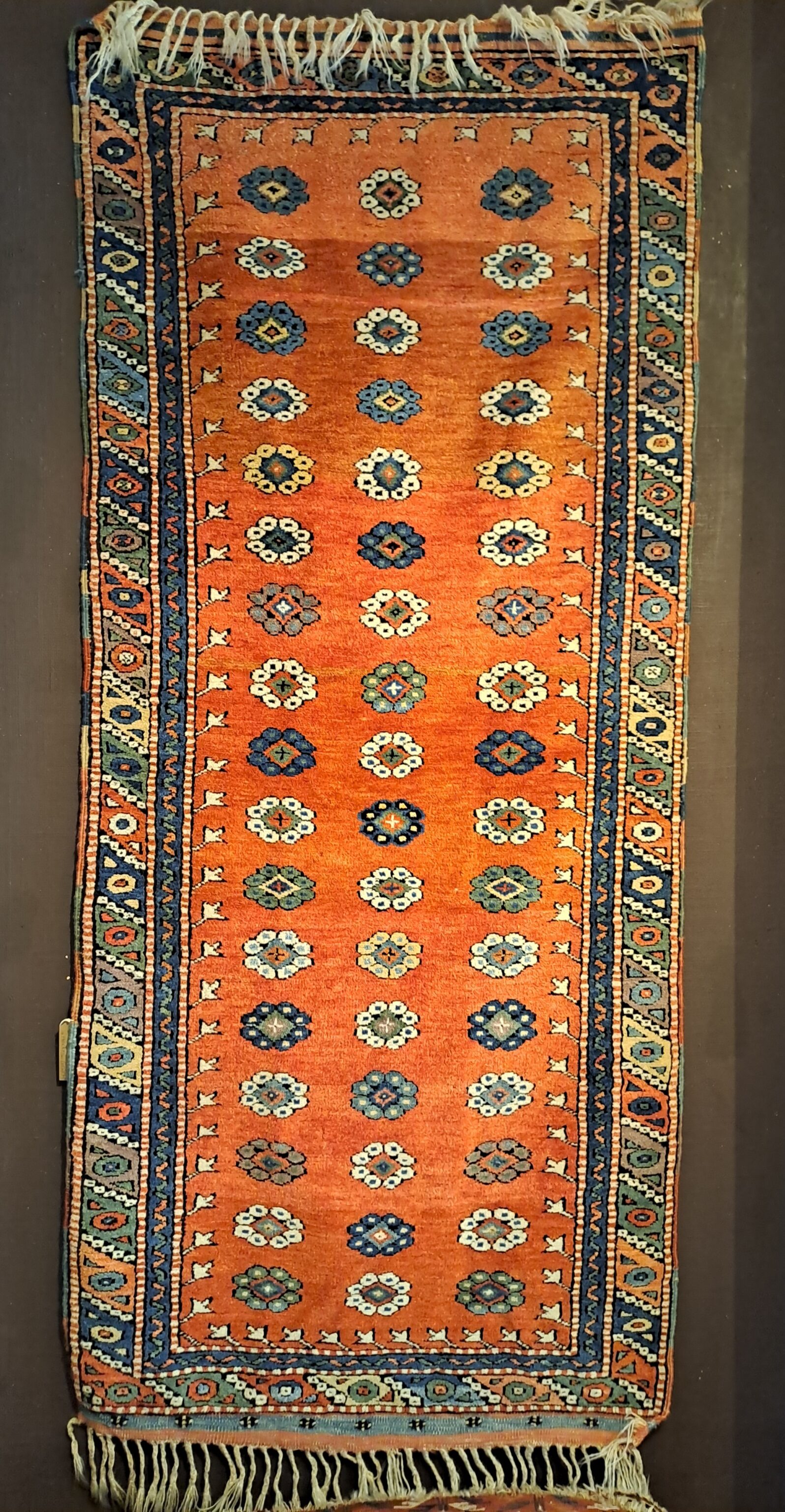 It was made as part of the Dobag project in Turkey, which was instigated by Harald Böhmer. Böhmer was responsible for the re-introduction of natural dyeing in carpet weaving, which led to a renaissance in high-quality carpet production employing natural dye stuffs and working with traditional designs. The women weavers on this project formed a cooperative and were therefore properly remunerated for their work.