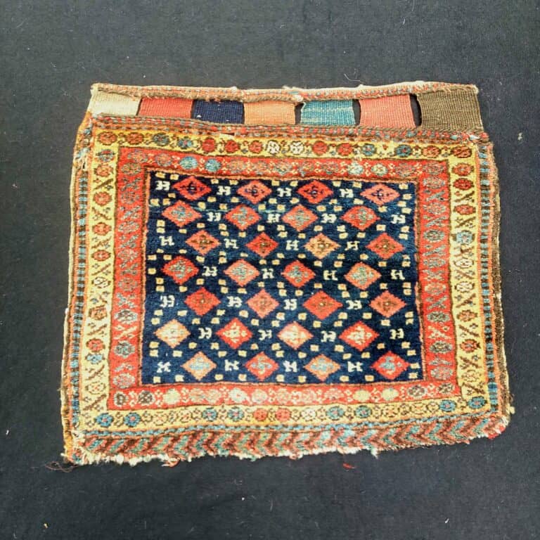 A very similar bag front is illustrated in Michael Rothberg’s excellent recent publication on tribal weavings (see Nomadic Visions. Tribal Weavings from Persia and the Caucasus. Published by Hali Publications and The Near Eastern Research Centre, 2021, Plate 58, page 149). Rothberg gives Southern Azerbaijan as the area of origin for his khorjin front..
